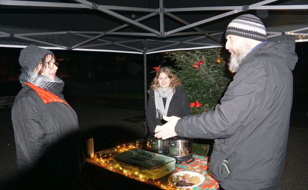Am vergangenen Freitag lud der Ortsverband Bündnis 90/Die Grünen Oftersheim zum „Grünen Feierabend“ auf den Lessingplatz ein. Trotz Regen kamen einige Interessierte vorbei – gut geschützt unter dem aufgebauten Pavillon. Sprecher*in Vanessa Seidel begrüßte die Gäste und freute sich über den gemeinsamen Jahresausklang bei Plätzchen, Punsch und Glühwein.